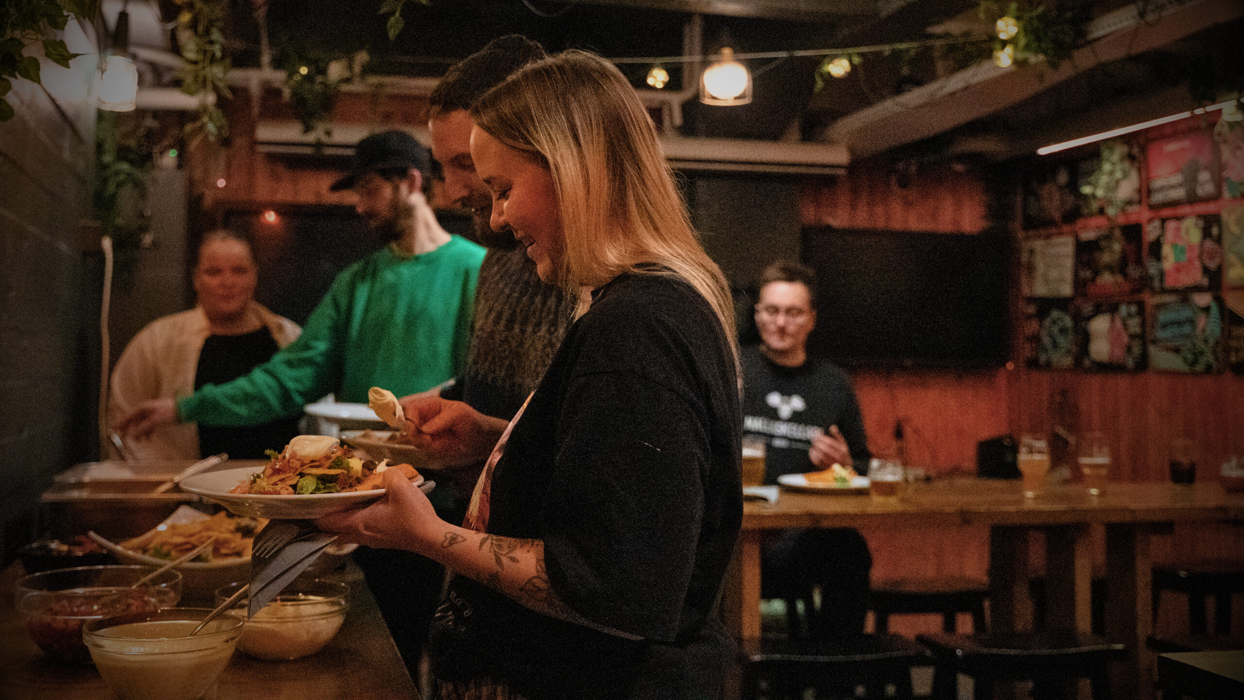Our meeting room is a great spot for guided beer tastings and buffet dining for groups of up to 25 people. You can also book the space just for your group for the whole evening. The room also comes with a projector and screen that you’re free to use during your reservation. Located in the heart of Oulu, with a total capacity of 100 guests, Mallaskellari is also available for private events.
